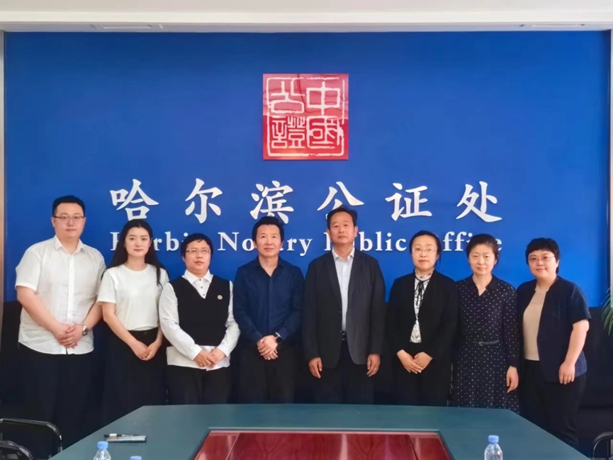 2024年6月19日,哈尔滨商业大学法学院院长高勇、副书记李萍、副院长杨姝玲、科研秘书司丹、研究生辅导员李紫薇一行赴哈尔滨公证处,参加了双方教学实践基地签约仪式。哈尔滨公证处党支部书记、主任王冰,党支部副书记、副主任寇玉芳,业务二部负责人张游美,办公室主任盛鹏达出席签约仪式。