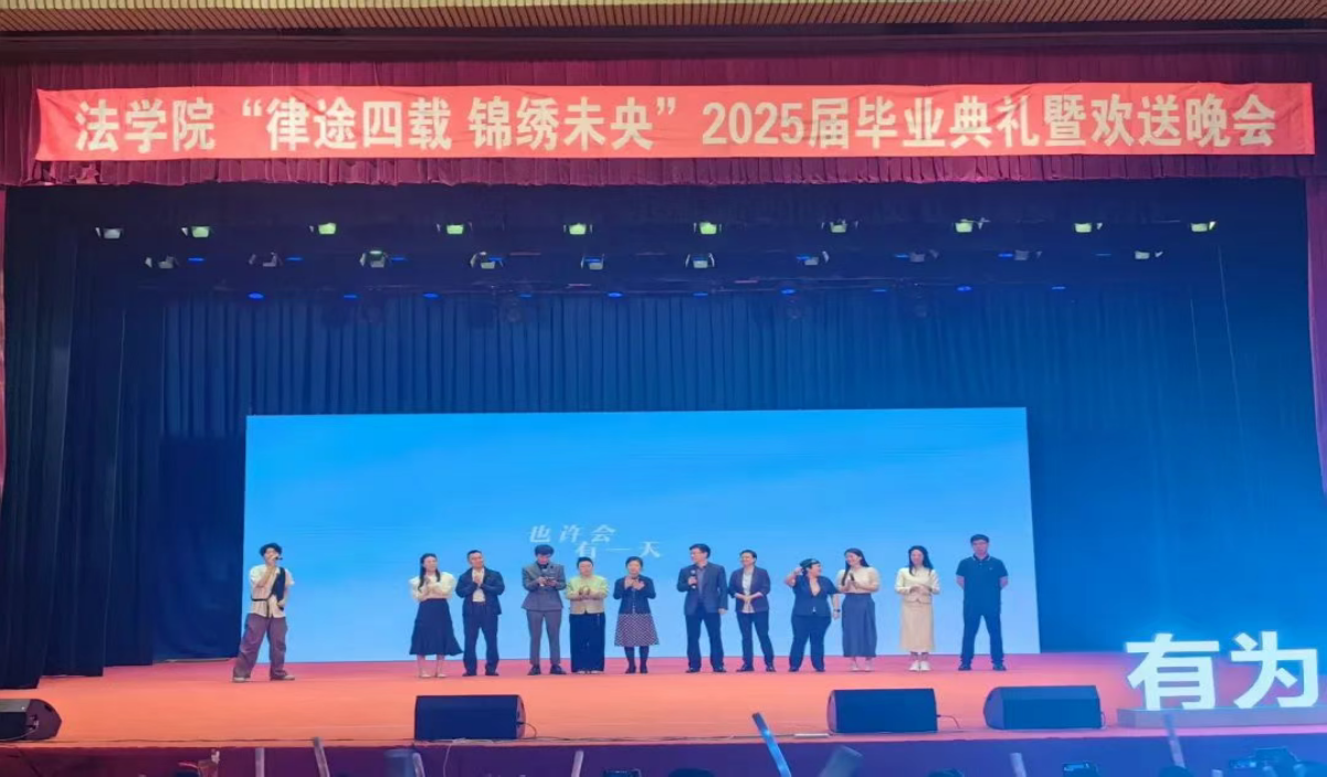 最后,晚会在教师们的大合唱中落下帷幕,为这场充满温情的欢送晚会画上了圆满的句号。相信从这里出发的每一位法学学子,都将以扎实的专业知识和崇高的法治信仰,在法治中国建设的伟大征程中书写属于自己的壮丽篇章。
