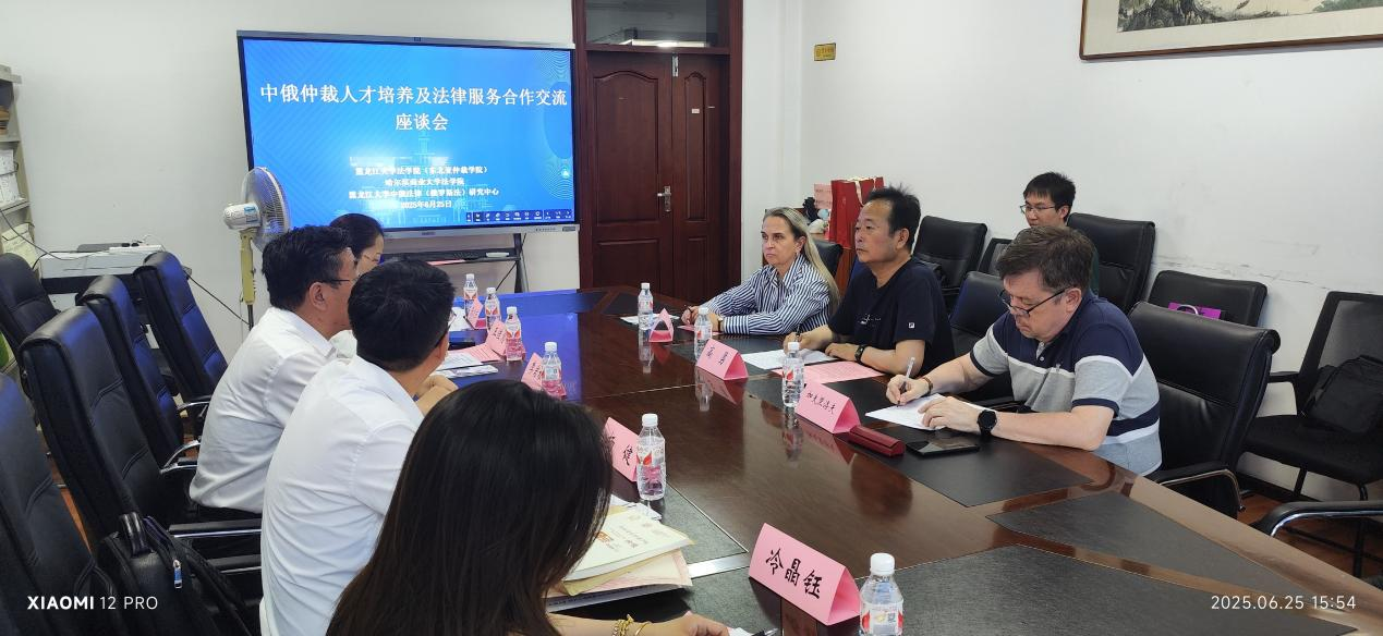 2025年6月25日下午,法学院高勇院长陪同我校聘请的两位俄罗斯专家加夫里洛夫教授和娜塔莉亚教授,一同前往黑龙江大学法学院,参加双方共同主办的中俄仲裁人才培养及法律服务合作交流座谈会。