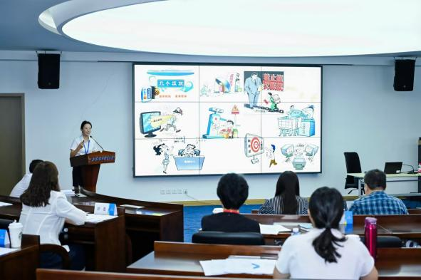 比赛中,郭昱杉老师巧妙将大数据分析、人工智能等数智技术深度融合于课程资源构建、课堂互动及学生评价体系,显著提升了教学效率与育人质量。她将课程教学、思政教育与法律援助实践有机融合,以富有感染力的教学风格和出色的现场发挥,在复赛和决赛中脱颖而出,获得评审团一致高度评价。