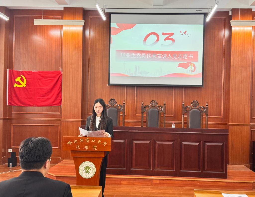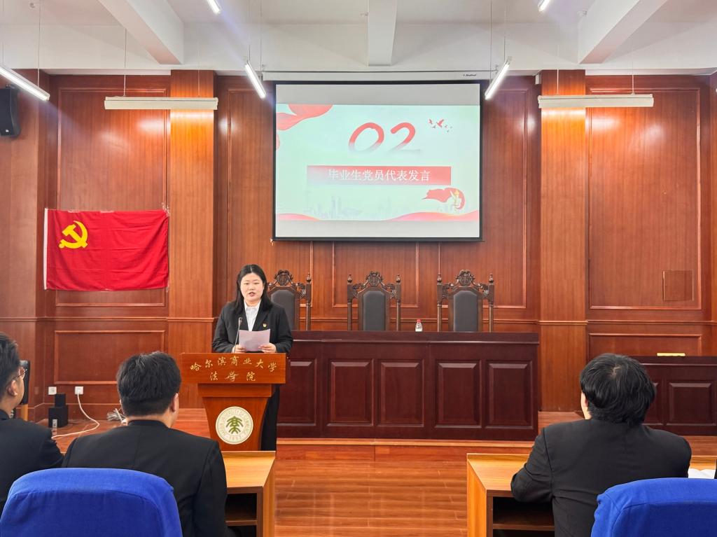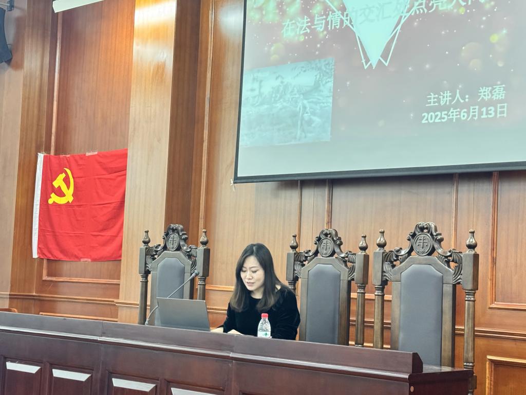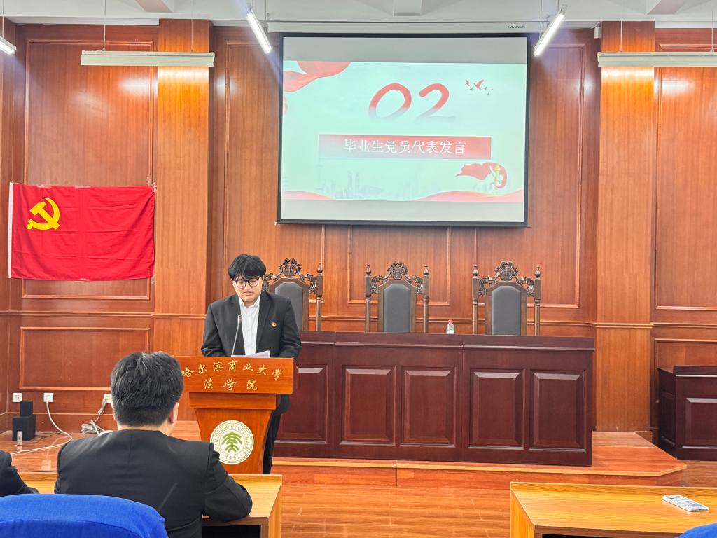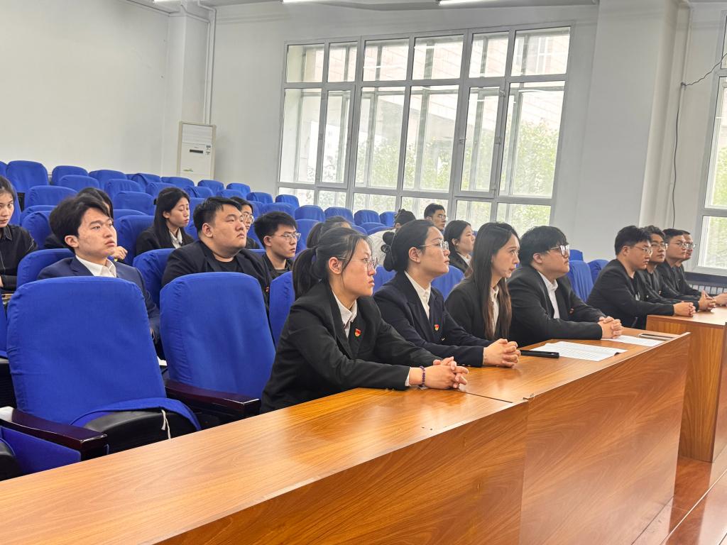 为强化2025届毕业生党员党性教育,筑牢理想信念根基,引导毕业生党员铭记初心使命,以坚定信仰奔赴人生新程,法学院于6月13日上午在模拟法庭开展2025届毕业生党员“最后一节党课”活动。