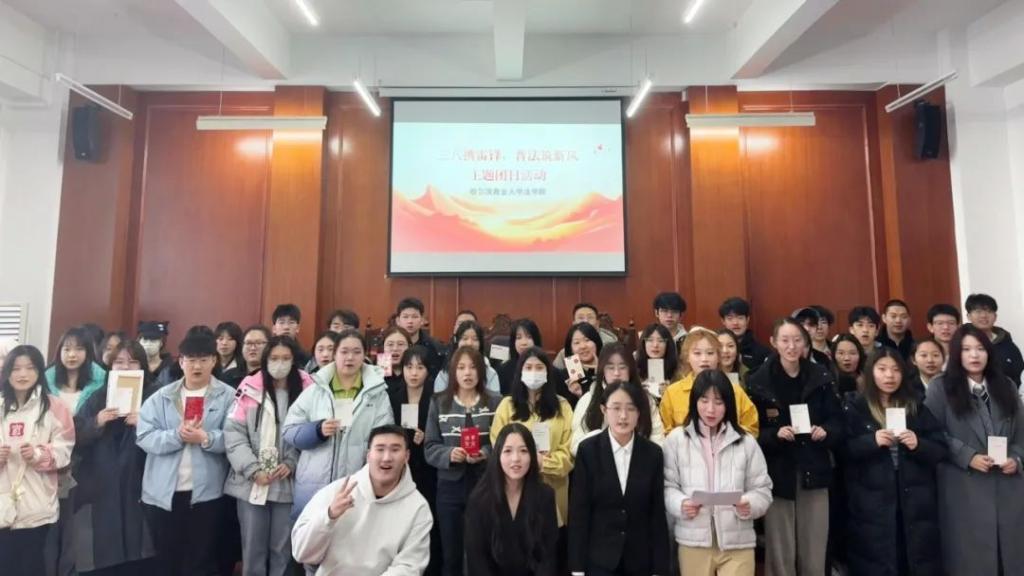 【哈商大法学院·基础文明创建月】法学院团委开展“雷锋日里学奉献 妇女节中扬权益”普法活动
