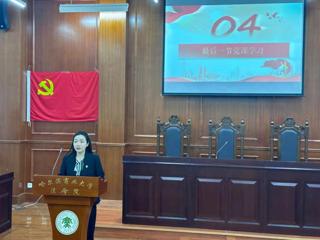为进一步加强毕业生党员理想信念教育,引导毕业生党员坚定不移听党话、跟党走,法学院于6月5日下午在模拟法庭开展2024届毕业生党员最后一课,法学院全体毕业生党员参加此次活动,党课由团委副书记单玮主讲。