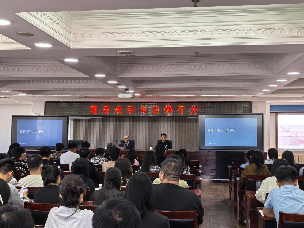 2024年9月6日下午,哈尔滨商业大学法学院名家讲坛第二期在江北校区行政楼612会议室成功举办。吉林大学法学院教授,博士生导师,中国法学会民法学研究会常务理事孙学致先生应邀莅临,以“意思表示与法律行为”为题,为法学院师生带来了一场精彩的学术讲座。讲座由哈尔滨商业大学法学院院长高勇教授主持,哈尔滨商业大学党委常委、副校长王福友及法学院教师、硕士研究生、本科生共一百三十余人参加。