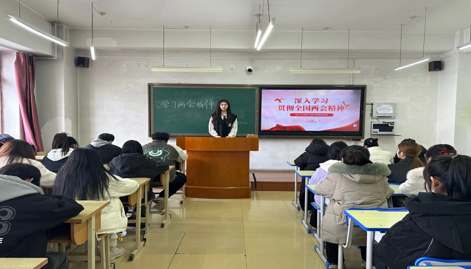 活动中,各班主讲人通过PPT与视频相结合的方式介绍全国两会新思想,如新质生产力、科技创新、教育强国等热点话题。“两会知识问答”环节,大家积极踊跃参与答题。分享感悟环节,同学们表示要勤奋学习、努力提升综合素质,积极投身社会实践,将个人理想信念与国家发展相结合。